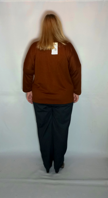 Демисезонная коричневая блуза с принтом свободного кроя выполнена из мягкого дышащего трикотажа.