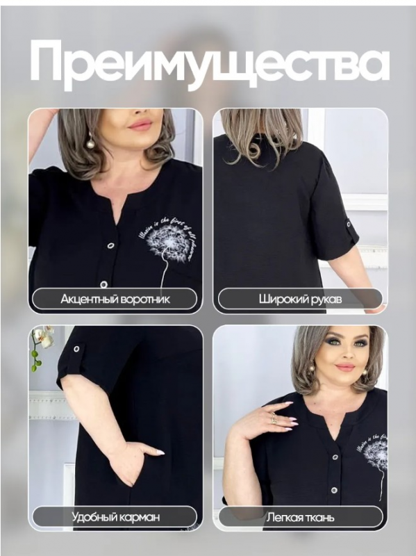 Есть грудные выточки. На полчке прорезиненный принт в виде одуванчиков.