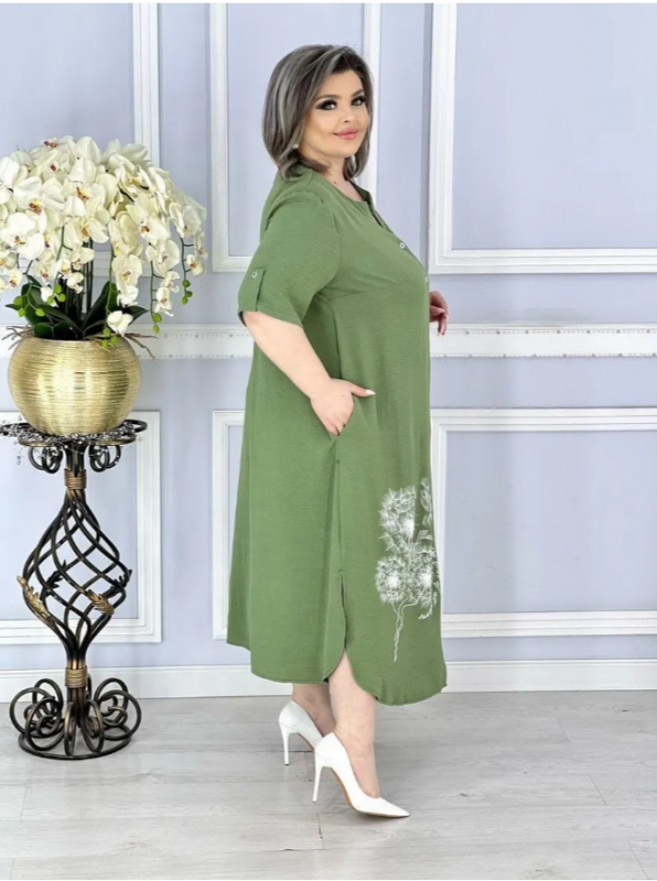 Красивое, летнее платье выполнено из ткани сингапур. . Ткань легкая, тонкая, но не рыхлая, с эффектом жатости, умеренно эластичная.