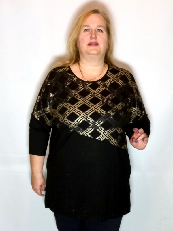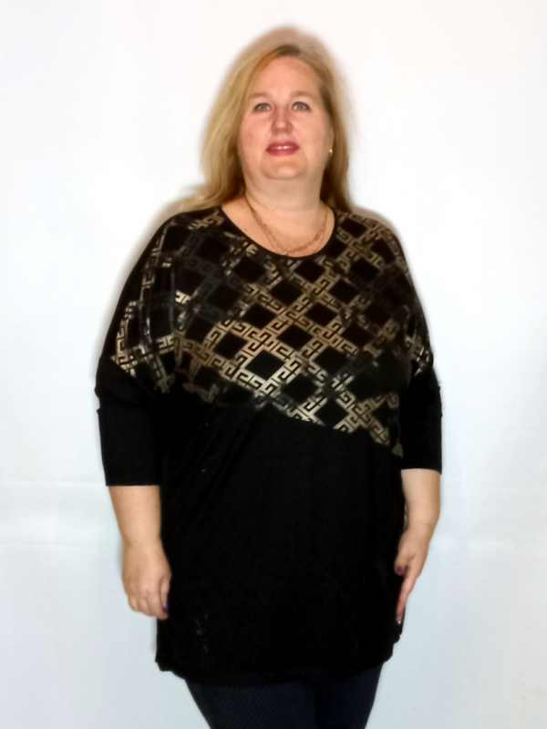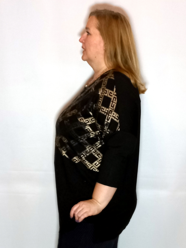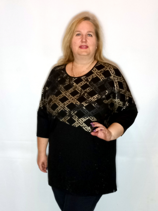 Стильная туника выполнена из трикотажного полотна с высоким содержанием вискозы.