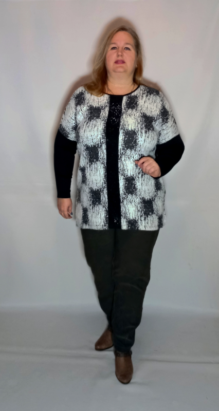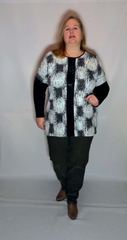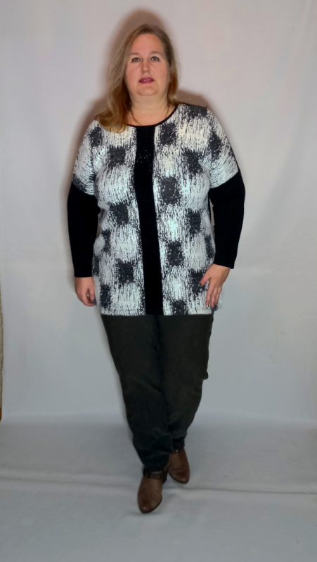 Туника выполнена из сочетания трикотажа вискоза ( спинка и рукава ) и вязанного трикотажа " альпака ".